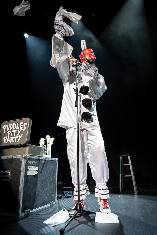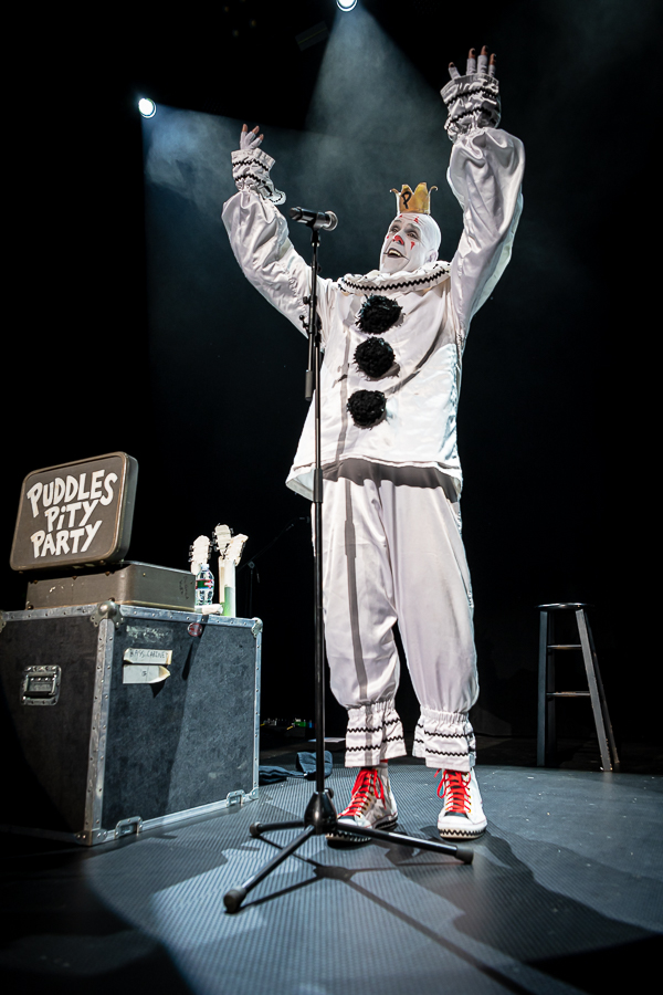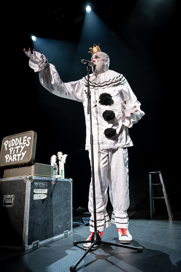 The switcheroo most definitely worked in the favor of opener Puddles Pity Party who took the stage to an absolutely packed house, the better part of which had been spending the last hour or two availing themselves of the Warfield bar (notably killing a few taps before the Puddles set even ended). With a few cocktails down, the San Francisco crowd was clearly stoked for 45 minutes of sad clown cover songs which included some elegant mashups of Metallica/Celine Dion and The Who/Johnny Cash (twice!).