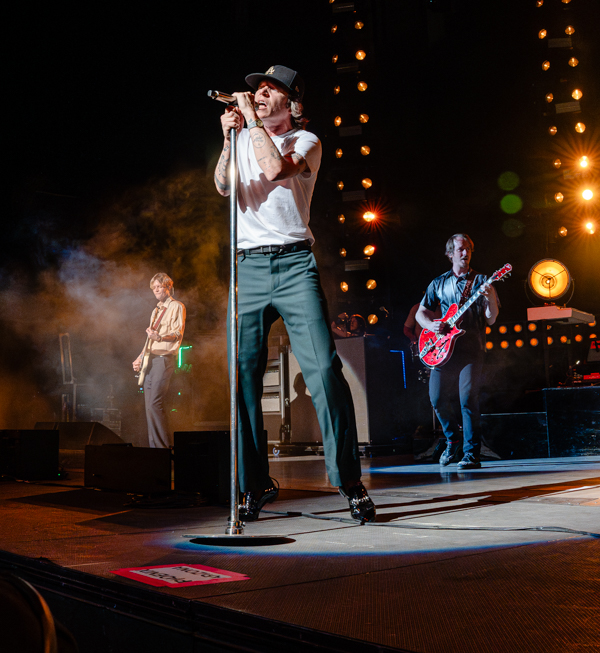 Cage the Elephant came out swinging to “Broken Boy,” a track from their 2019 album Social Cues. Hitting the stage hard with fire, the band sets the bar high for the rest of their set. Although touring on their newest album Neon Pill, their first five songs cover four different albums. While their sound has changed over their six studio albums, the new release fits right in line with their funk rock, alternative sound.