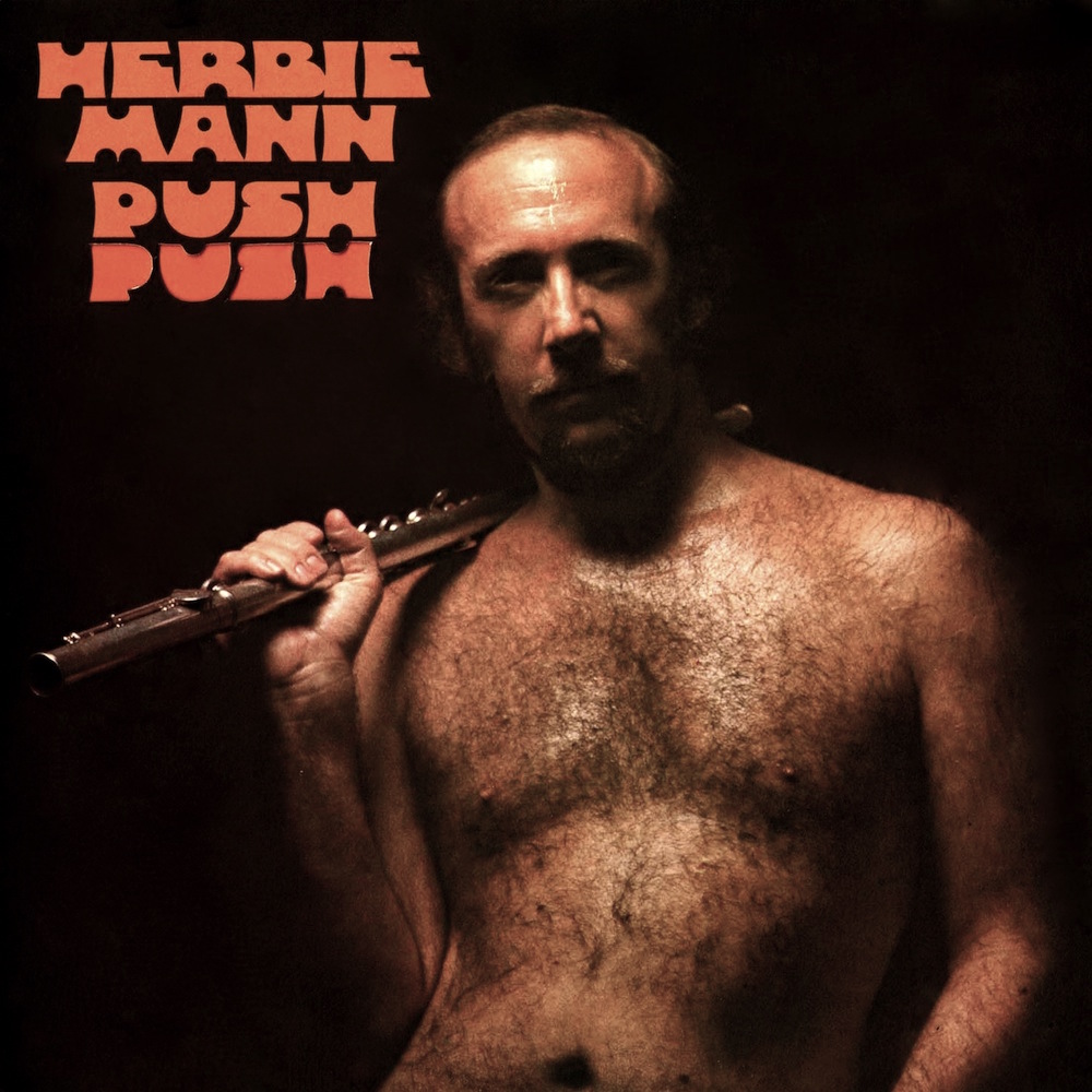 Push Push was a radical statement indeed; Herbie stands boldly on the cover like a swinger departing an orgy, hairy chest pelt slathered in WD-40, flute flung insouciantly over a naked shoulder, a decidedly smug post-coital pout on his face. Mann didn’t just invent shirtless jazz with Push Push; he suggested that the flute had other possibilities, creatively salacious uses that didn’t bear thinking about.