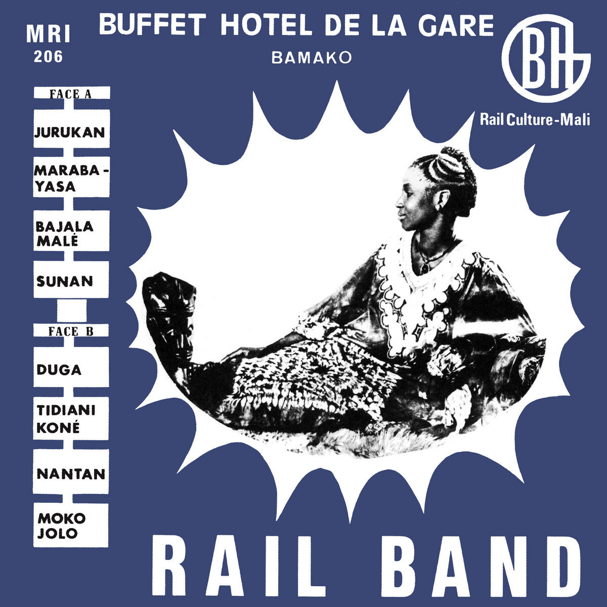 As detailed on the cover, the Rail Band was the house act at the Buffet Hotel de la Gare in Bamako, the capital of Mali. Formed through sponsorships by the country’s Ministry of Information and Railway Administration, the bandstand was in the bar of the Buffet, a station hotel, located near the railway, hence the group’s name. The five gigs a week were long (reportedly 2pm until late), but that much playing led to the striking ensemble cohesion heard on this record.