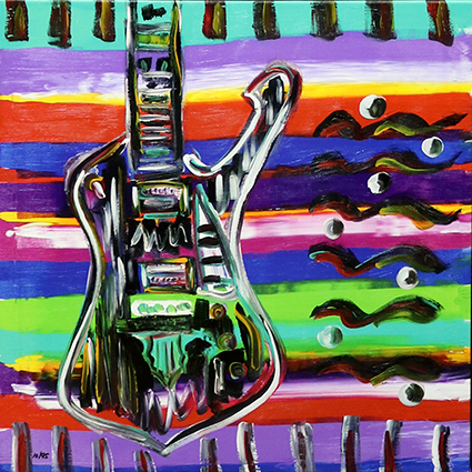 Frontman Paul Stanley had a hand in creating that art, and he’s joined the handful of rockers who augment off time by taking to the easel, with colorful canvases that range from abstractions to specific band-centric self-portraits, flags, and an array of guitars.