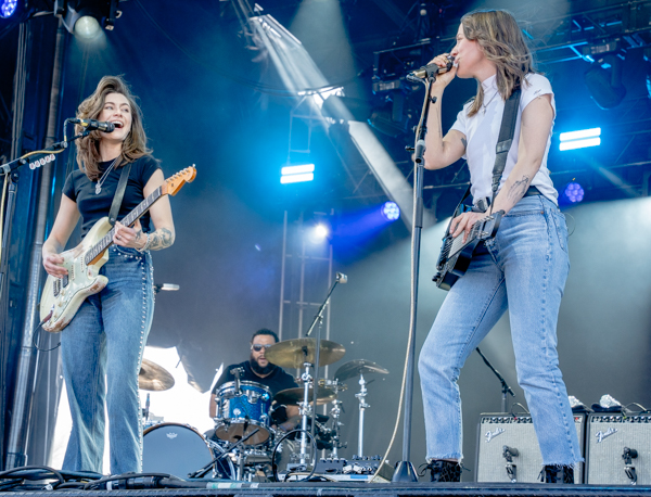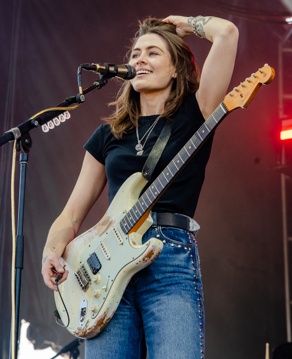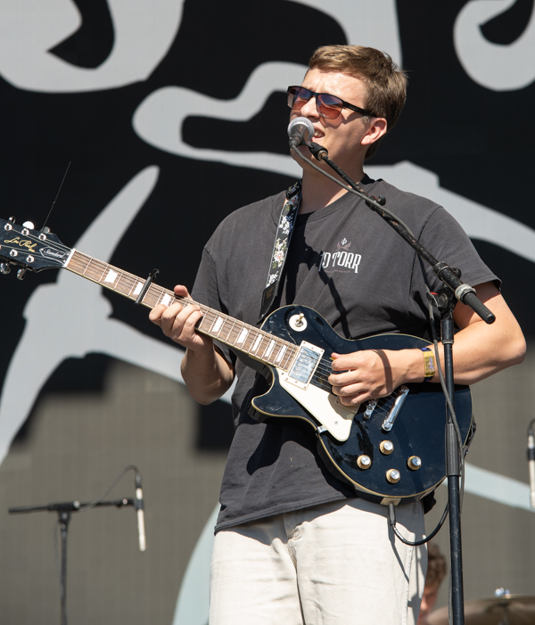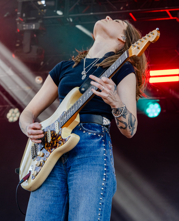3:35 PM: The underrated highlight of the day, Larkin Poe hit Right Field. The southern rockin’ blues duo came out swinging and did not stop the entire set. The sisters recently won a Grammy for best Contemporary Blues Album for the 2022 release Blood Harmony, and those songs sound even better live. Lead singer/guitarist Rebecca Lovell’s guitar lines rival anyone touring right now. Megan Lovell compliments Rebecca by playing her invention called the Electroliege—a lap steel guitar designed and structured to be played standing up. Harboring earth shattering guitar lines and innovation, Larkin Poe is an act that deserves substantially more recognition.