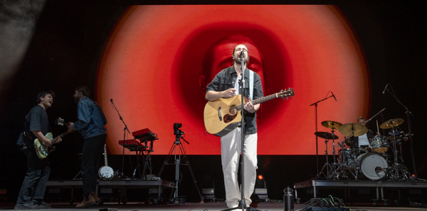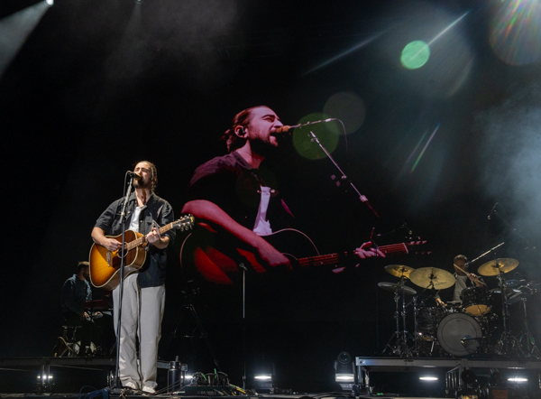 6:50 PM: One of the most recent names to explode in the music industry, Noah Kahan blew the roof off the Home Plate stage. 2023 was a wild year for Noah and his band as he was nominated for Best New Artist at the Grammys. Rightly deserving of a later time slot, Noah Kahan delivers music the fans connect to. Broaching hard hitting topics, he offers a vulnerability that genuinely seems to resonate with the audience. You have to take the good with the bad in life, and Noah Kahan is the epitome of this. He makes jokes about his family, his life, and everything under the sun during his sets. Almost like stand up comedy at times, he balances his sensitive lyrics with lighthearted fun.