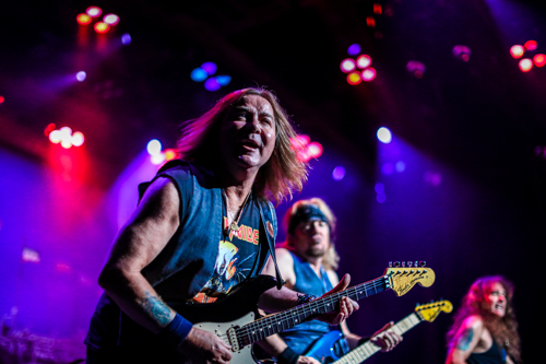Founder of Iron Maiden Steve Harris explained, “the whole band is really enjoying this tour and we are really looking forward to seeing everybody again!” The band’s bassist and songwriter was fully participating in the changing themes throughout the show as he pretended to use his bass as a machine gun during, “Aces High.” Guitarist Janick Gers kept the energy consistently high with leg kicks, windmill guitar strums, and by swinging his guitar overhead. Dave Murray’s infectious smile was on full display as he engaged the crowd with heartfelt solos. Adrian Smith joined the fun while shredding a custom Jackson guitar alongside his bandmates. Drummer Nicko McBrain’s presence was felt deep in the chest as his booming set of drums rolled along.