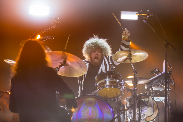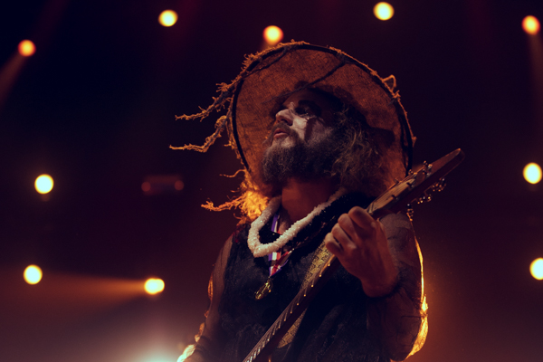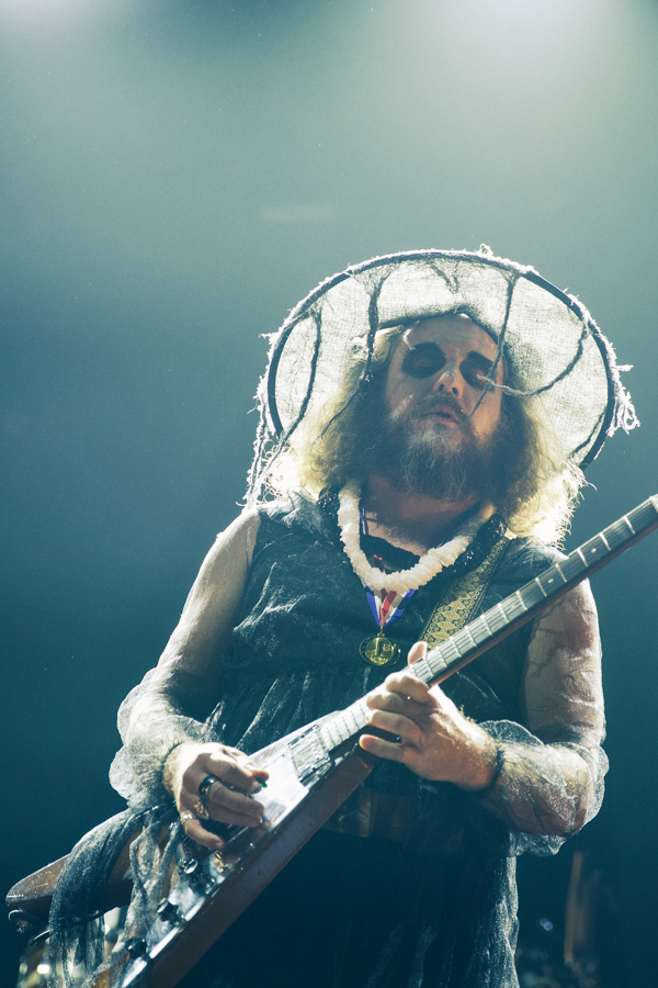 LOUISVILLE, KY | It’d been six long years since a My Morning Jacket hometown show in Louisville, so the fellas pulled out all the stops for their arena-sized Halloween celebration at the KFC Yum Center. Following heartwarming opening local acts—Producing a Kind Generation and Louisville Leopards Percussionists—the costumed members of MMJ took the stage and rocked their faces off for three solid hours. Their set included heart-shaped paper confetti, a Halloween balloon drop, more confetti, and larger-than-life sized puppets courtesy of the Squallis Puppeteers.