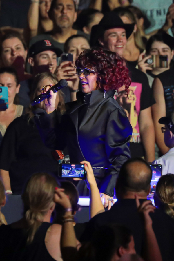 Throughout her performance, Twain offered a handful of fans a more personal experience. For one number, she welcomed select couples from the audience to the stage to watch from dimly lit high-top tables, transforming the space into an elegant and intimate experience for these individuals beaming in awe of Twain: stunning in every sense of the word.