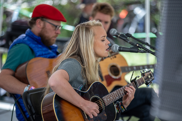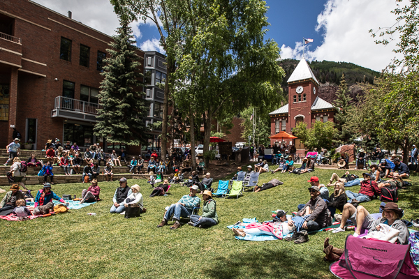 TELLURIDE, CO | 1:10PM: After a delicious lunch at Taco Del Gnar, I wander over to Elks Park and catch a bit of the Troubadour performance by Cecilia Castleman, Billy Huston, and Tim Ostdiek. I love that even if you don’t have a ticket to the Telluride Bluegrass Festival, you can still see free shows every day.