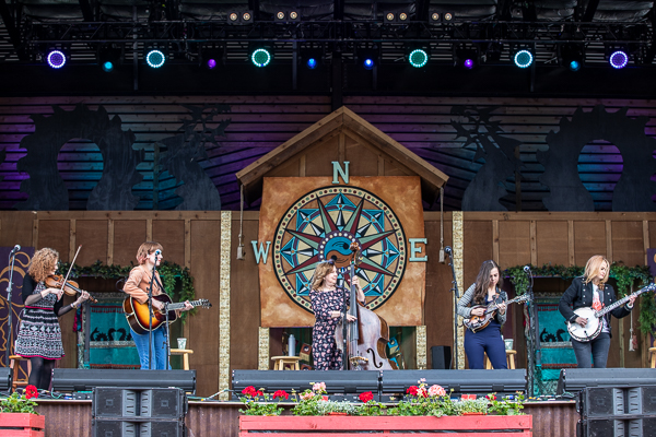 3:47PM: Seventeen minutes into their set and I already can’t get enough of the First Ladies of Bluegrass. Comprised of Alison Brown on the banjo, Becky Buller on the fiddle, Sierra Hull on the mandolin, Missy Raines on the standup bass, and Molly Tuttle on guitar, it’s almost as if the term “supergroup” doesn’t do them justice. Each are taking turns introducing each other and playing a song of their selection. It’s Missy’s turn and Alison explains, “As we like to say: bluegrass rules but Missy reigns!”