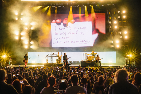 The Oklahoma natives came out swinging, literally by performing their 2002 hit song “Swing, Swing.” After the song a graphic on all the screens displaying what looked like a time warp. All American Rejects lead singer Tyson Ritter announced that we were taking a little trip to the early two thousands. Being thrown back into a time warp, the nostalgia kicked in immediately. Just like that, we were back at the height of All American Rejects releasing music. It wouldn’t look like it because of the dancing and energy on stage, but elements of the show definitely pulled on the heartstrings a bit, reminding us all of the good old days, the entire lineup hit home.