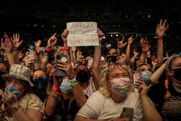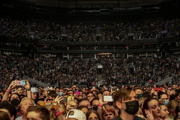 The arena was electric as Twenty One Pilots’ intensity was met—and at times exceeded—by a passionate fanbase who loudly sang their full setlist of songs spanning the band’s accomplished career. Engaging the audience, lead singer Tyler Joseph instructed each half of the arena to each sing a line from “Mulberry Street.” And in a fun feat of strength, fans from the pit supported a platform that held Josh Dun on the drums as the Twenty One Pilots’ performance reached its crescendo. It was fully evident that the band was grateful for the opportunity to perform again, and they did not miss any chance to show it. The crowd was left in a dream state as the thrill ride of a show ended with teal and pink confetti raining down.