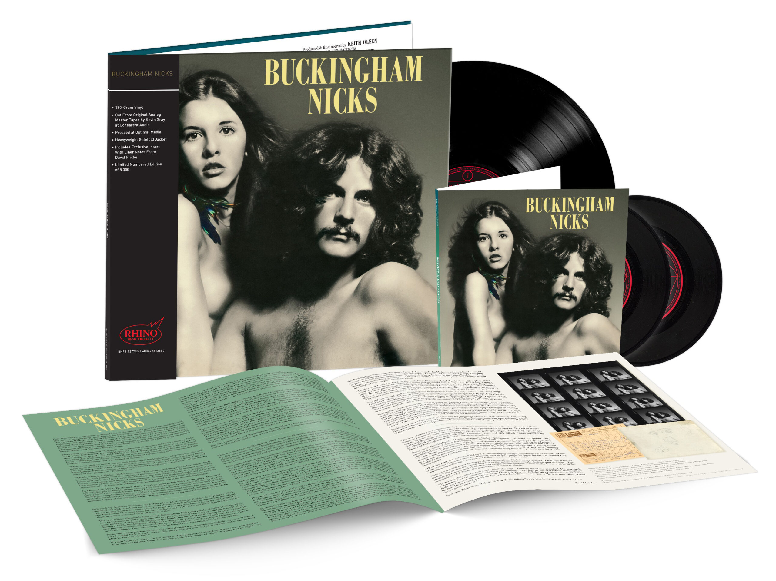 Buckingham Nicks will be available from Rhino on CD and digitally with remastered sound by Chris Bellman, who also cut lacquers for several 1LP color vinyl variants: Custard (Amazon), Baby Pink (indie stores), Violet (Books A Million, and Baby Blue (general retail).