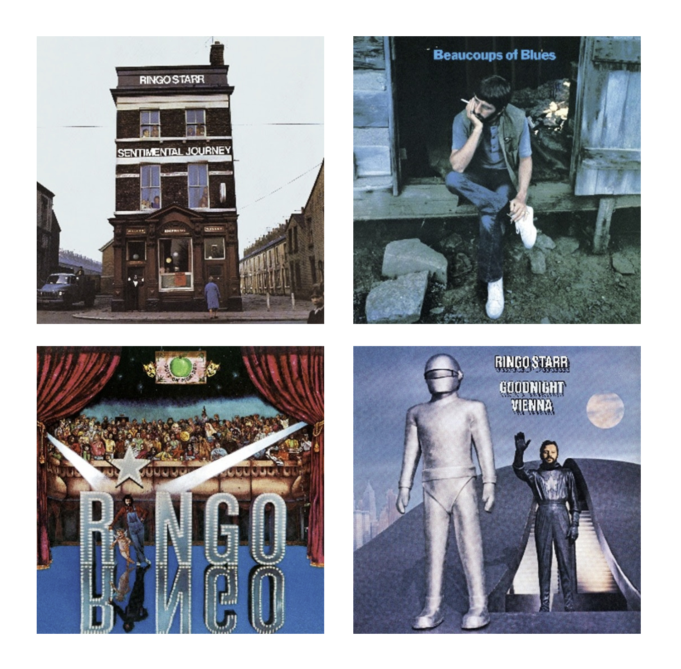 VIA PRESS RELEASE | Today, UMe announce the reissue of Ringo Starr’s first four solo albums out October 24, 2025. Brand new limited-edition pressings of Sentimental Journey on buttermilk yellow color vinyl, Beaucoups of Blues on baby blue color vinyl, Ringo on molten lava color vinyl, and Goodnight Vienna on psychedelic waves custom color vinyl will be available via his official store. Pre-order HERE.