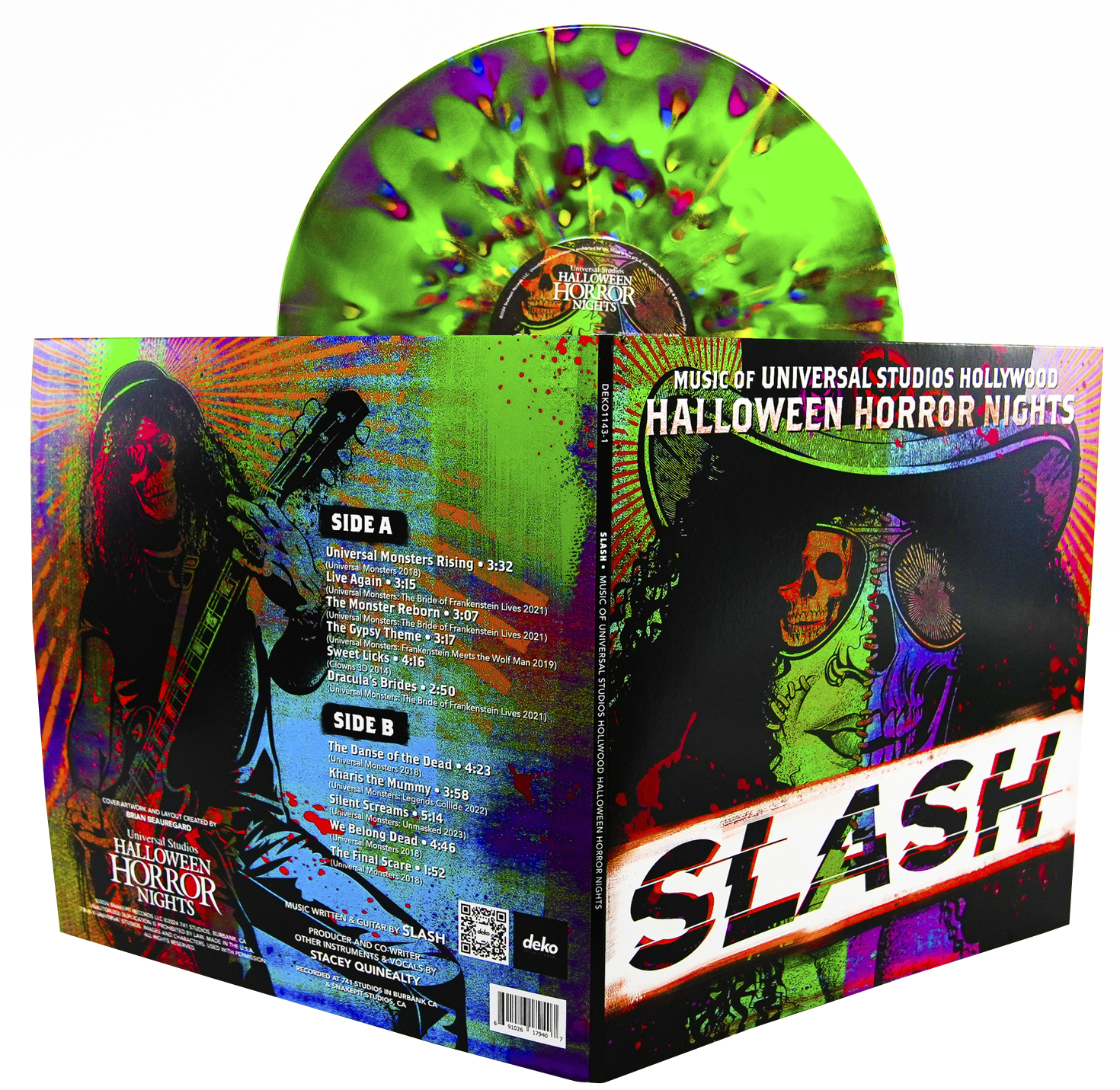 This limited edition 11-song vinyl-only album comprised of Slash’s original compositions over the last six years for the Halloween Horror Nights “Universal Monsters” haunted house, is sold exclusively onsite at Universal Studios Hollywood from September 5 through November 3. 300 alternate color vinyl that are hand signed by Slash will be placed in stores at Universal Studios Hollywood until they are sold out, and only 100 are available online via Deko Entertainment HERE.