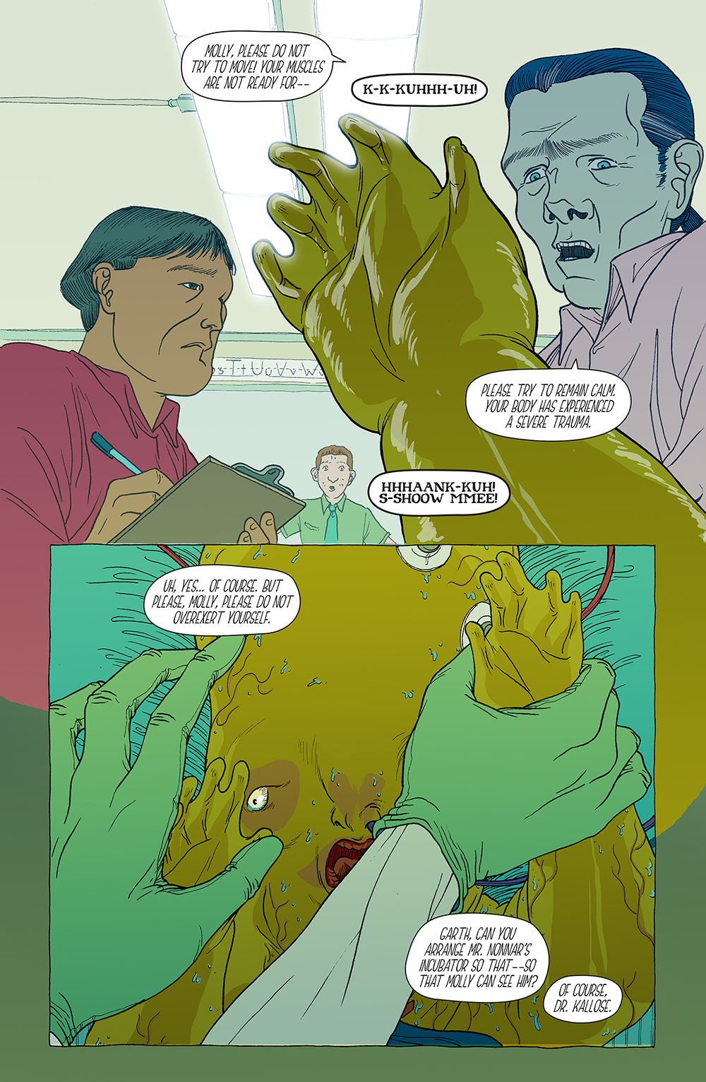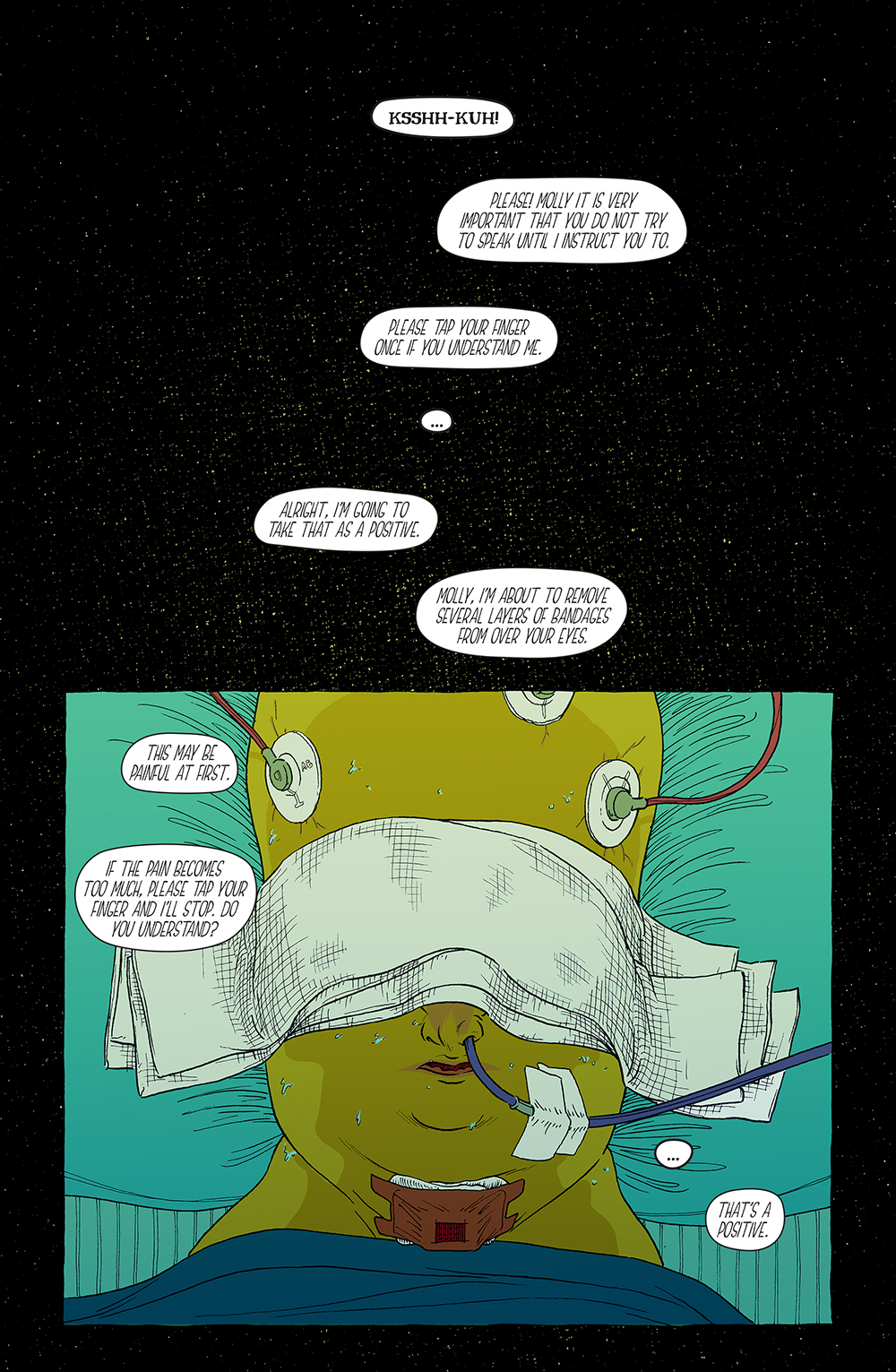 “Upgrade Soul was originally conceived for this format; when you put on your headphones and start swiping through the panels, and Alexis’ score punctuates every interaction, it’s just an incredibly immersive reading experience. There are several moments where my already creepy story becomes almost unbearably tense,” said Daniels. “We set out to create a digital comic that was first and foremost reverent to the comics medium, and I’m so proud of the final result.”