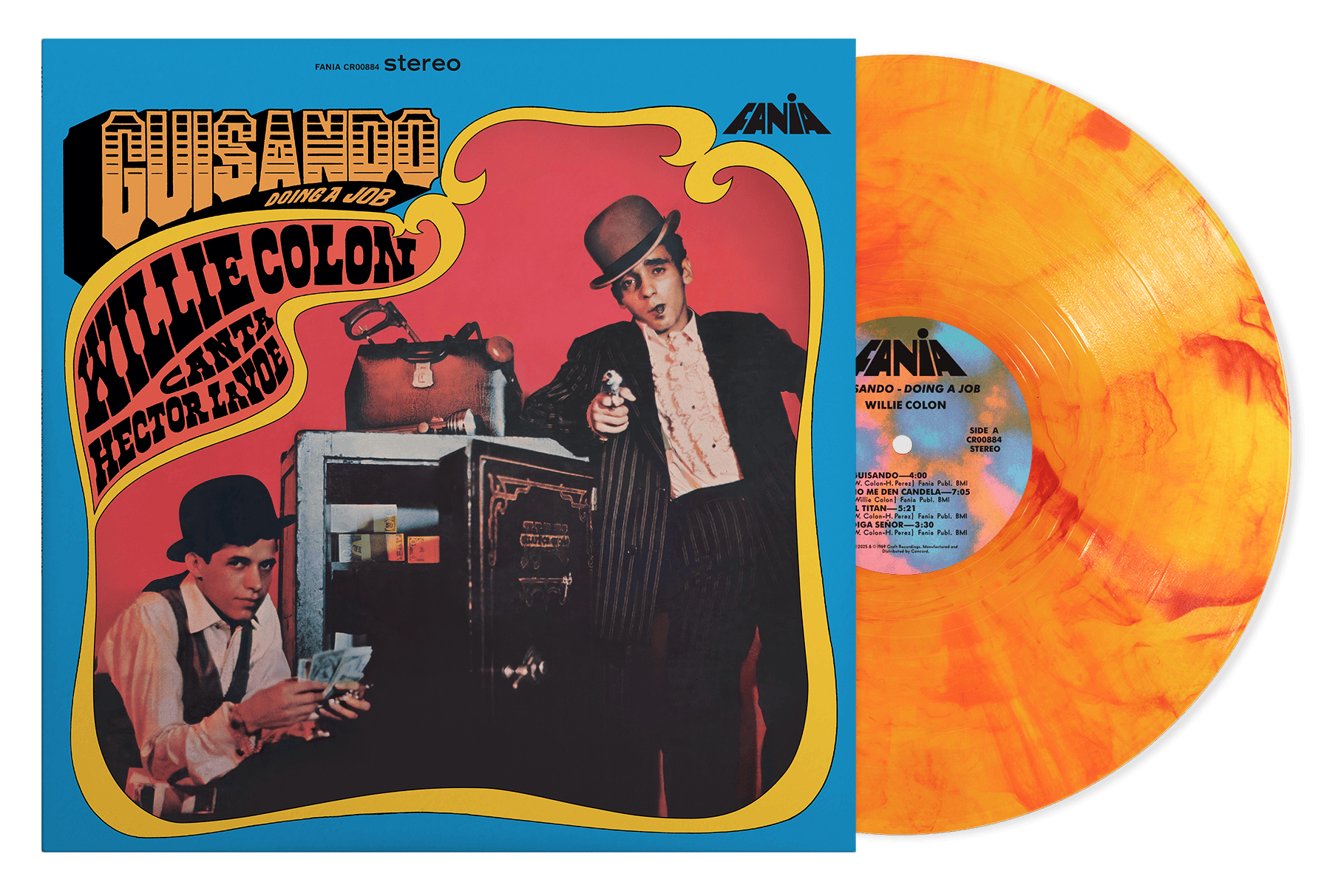 While those first two titles were billed under Colón’s name, it became clear that audiences loved the rising stars as a package deal. That partnership was solidified with their third album, 1969’s Guisando: Doing a Job, which featured Lavoe alongside Colón on the album cover, as baby-faced bank robbers—continuing The Hustler’s gangster theme (a common thread throughout their collaborative LPs).