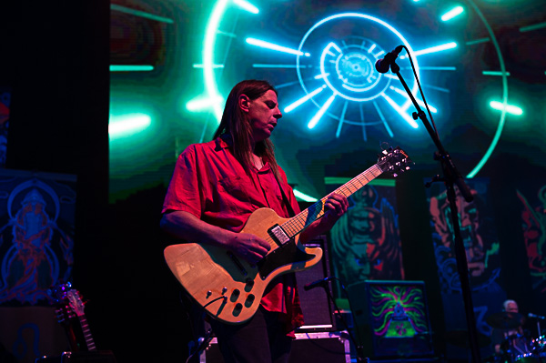 Alongside Brock, Richard Chadwick’s thunderous drumming reverberated with a powerful pulse. Magnus Martin showered celestial melodies from his guitar, while Doug MacKinnon’s bass, like an anchor, ensured we stayed connected to the band’s cosmic rhythm. Yet, amidst these stellar performances, it was Thighpaulsandra who became the sorcerer of the night. His mesmerizing play on the keyboards and synthesizers felt like magic dust sprinkled across the universe, enveloping us in layers of sonic wonder.
