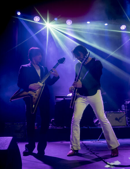 Jet’s evolved sound is matched by their sharpened image. Cester struts on stage in white tailored jeans that flirt with bell-bottom territory, paired with sleek cowboy boots and a simple shirt. It’s a look that screams rock star confidence without trying too hard. The rest of the band follows suit, each member sporting their own version of cleaned-up rock ‘n’ roll cool. It’s clear they’ve traded their scruffy early-days of leather for a more curated edge, but their sonic punch remains as potent as ever.