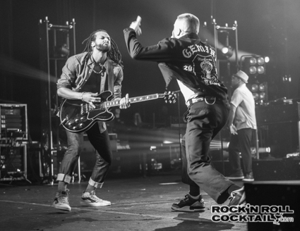 Not being too familiar with Macklemore’s catalog or new album for that matter, I did prep myself a bit by watching video clips from the previous gigs (which is essential for a photographer to get a sense of what to expect). The surprise for me was the second song of the night called “Firebreather,” which is a full on, hard rock explosion. The multi-instrumental genius that is Macklemore guitarist Cinque Kemp was on fire. Man, this guy can shred on guitar, and he makes it look epic at the same time. The energy in the room fueled by the blaring red lights and multiple pyrotechnics looked like a full tilt rock ‘n’ roll party from hell—in a good way, that is.