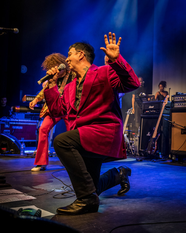 The evening unfolded masterfully. Marc Almond took the helm as the evening’s magnetic MC, introducing T. Rex’s legendary producer Tony Visconti and the Dirty Pretty Strings, who added a depth of orchestral resonance to the performances. T.Rextasy, hailed as the ultimate tribute to Bolan, not only opened the show but seamlessly wove their presence throughout the evening as the house band. Under the dynamic leadership of Danielz, they resurrected Bolan’s mystique with electrifying finesse. Their renditions of classics such as “Jeepster” and “I Love to Boogie” stood as a testament to their unparalleled homage to the music legend.