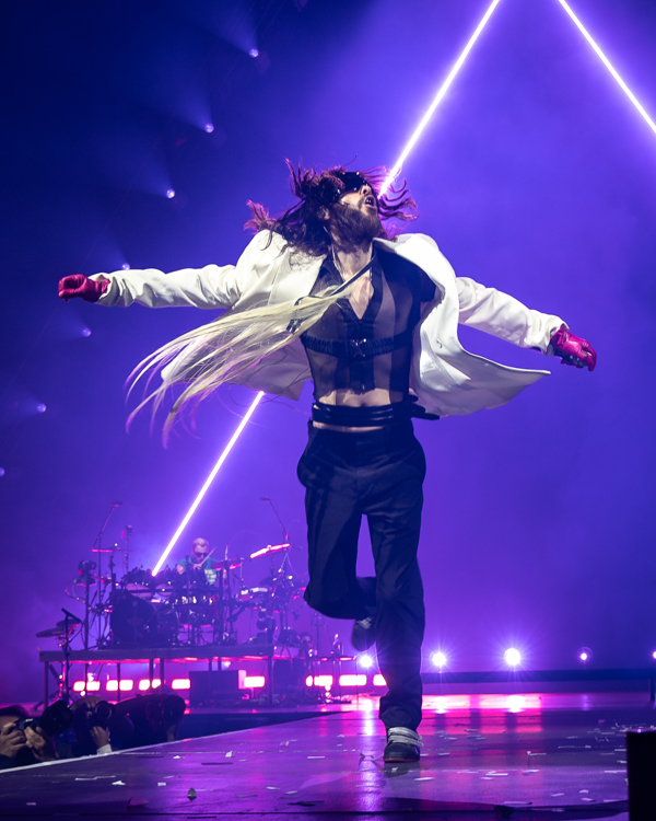 From the moment the band launched into the thunderous opening of “Up in the Air” with a massive explosion of confetti, it was clear that this would be a huge show. Ripping straight into “Kings and Queens” and “Walk on Water” kept the momentum soaring, proving that Leto’s knack for massive hooks is undeniable. But it’s not just the music that’s out of this world—Leto brings a level of creativity that’s light years ahead. Picture this: lasers, fire, neon lights, dramatic leaps, and costumes so elaborate they’d make a Broadway wardrobe jealous and have Pink Floyd fans reminiscing.